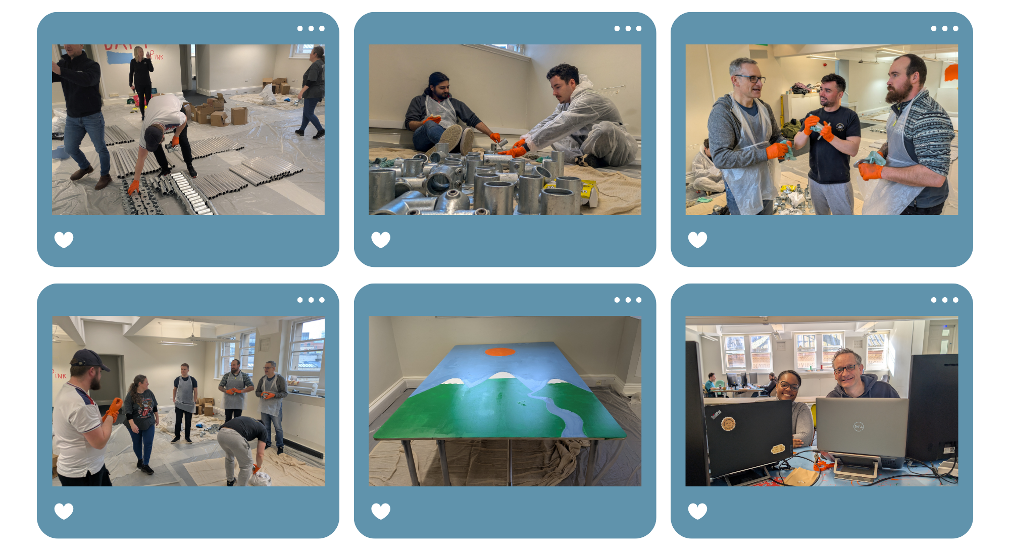 That’s why everyone at miso has their own proper desk. And not just any desk! The tabletops were hand made in Worcester from locally sourced wood. The table legs are reclaimed scaffolding. As a team, we carried these up three flights of stairs, built them, and painted them in any way we liked.